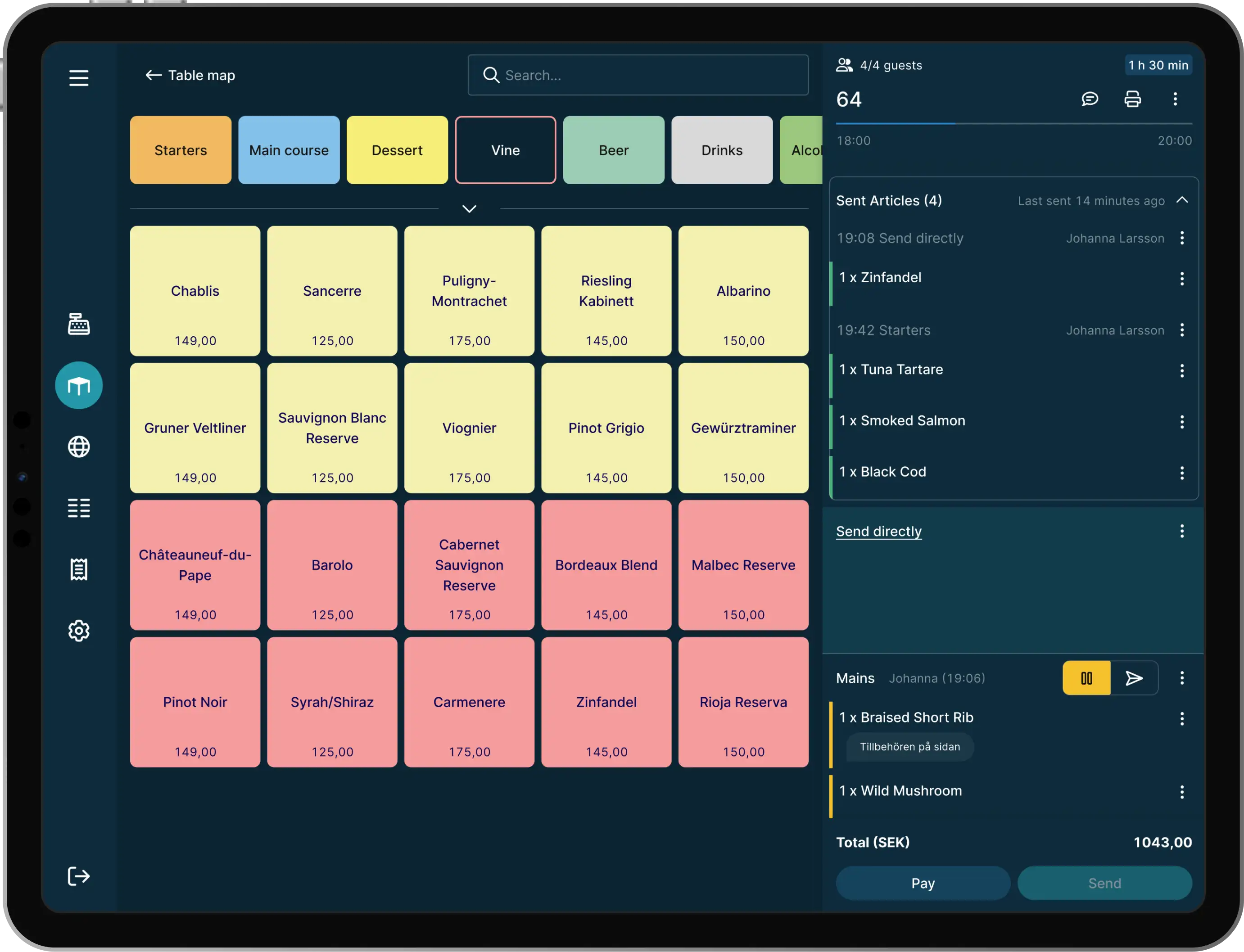 Bordskartan räknar själv ut vilka bord som räcker, flyttar automatiskt om läget ändras, och varnar innan du bokar in ett sällskap som inte får plats.